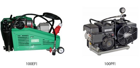 高壓呼吸空氣壓縮機 100升/min; 有單相、3相、汽油機等發動機類型可選